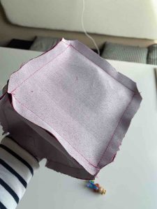 Wende die Tasche und Bügel die Kanten schön aus. Steppe nochmal ringsherum ab. Dabei wird auch die Wendeöffnung geschlossen.