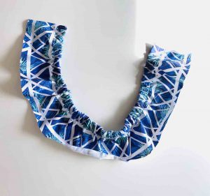 Zieh nun an den Einhaltefäden, so dass der Stoff sich zu kräuseln beginnt.