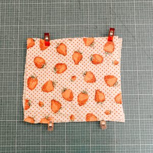 ie beiden Quadrate rechts auf rechts aufeinander und stecke die obere und untere Seite mit fest. Nähe mit der Overlock oder einem Geradstich .