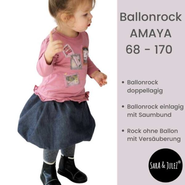 Beim E-Book Schnittmuster Ballonrock AMAYA handelt es sich um ein vielseitiges Ebook für einen Ballonrock, den du in 3 Varianten nähen kannst: