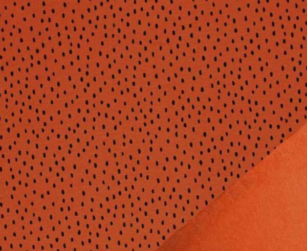 Sweatstoff mit angerauter Rückseite. Dusty orange dots.