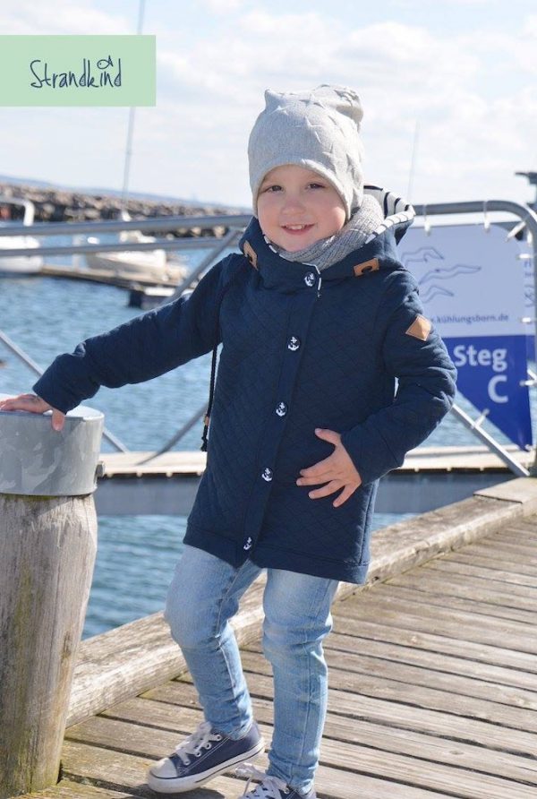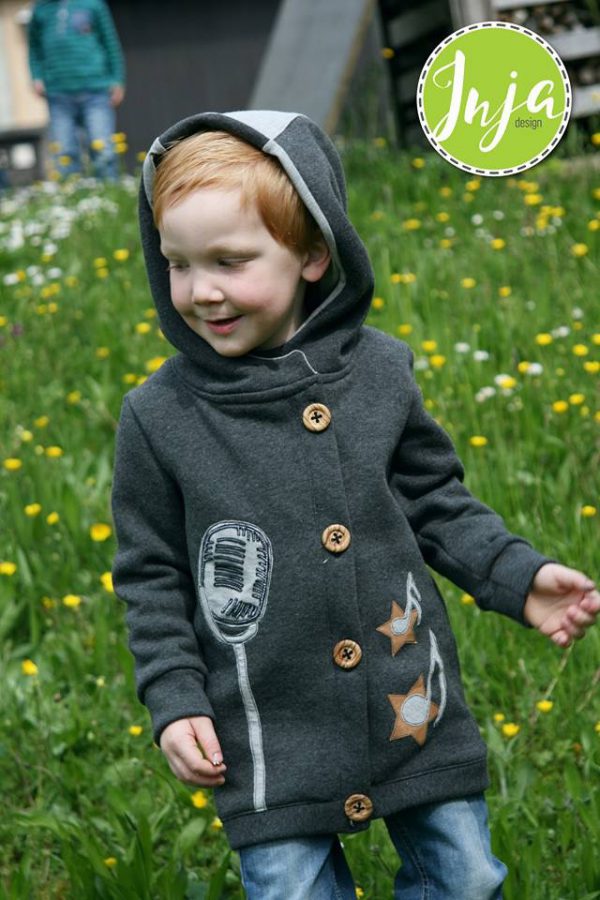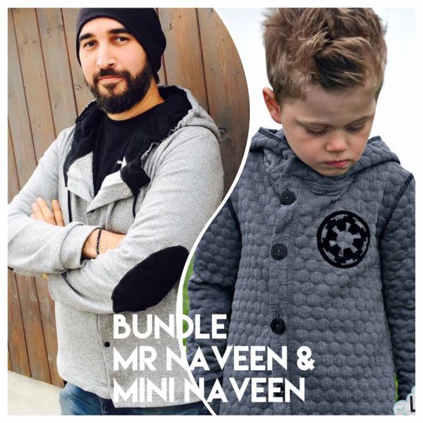 Im Bundle Sweat & Outdoor Jacke Mr NAVEEN und Mini NAVEEN findest Du das Schnittmuster und Anleitung für eine gerade geschnittene Jacke mit einer schrägen Knopfleiste.