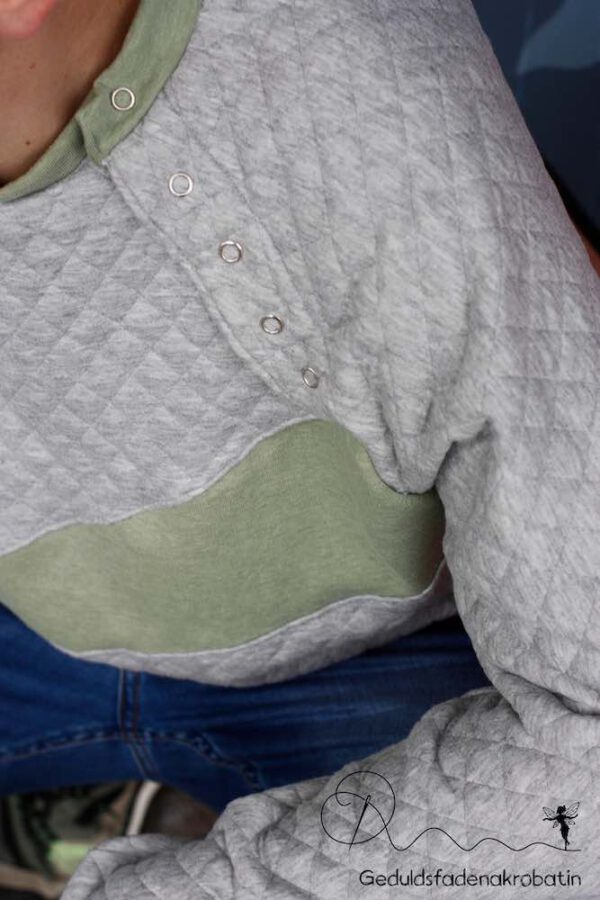 Genäht werden kann BUTTON RAGLAN aus Strick, Sweat, Steppsweat, Fleck, Sommersweat, etc.