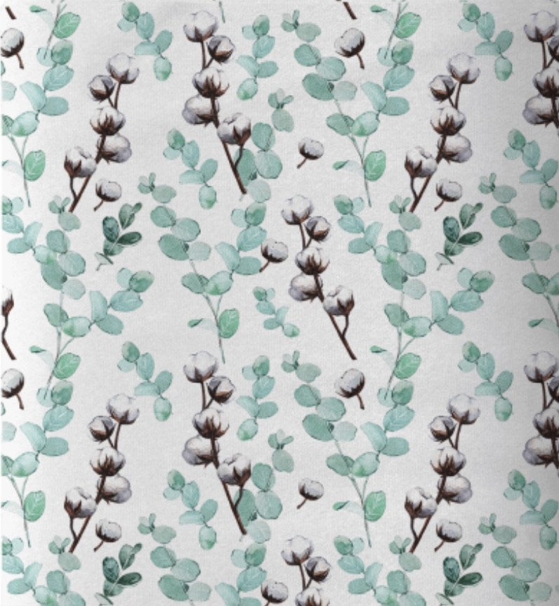 Baumwolljersey mit Digitaldruck Eukalyptus auf weißem Grund