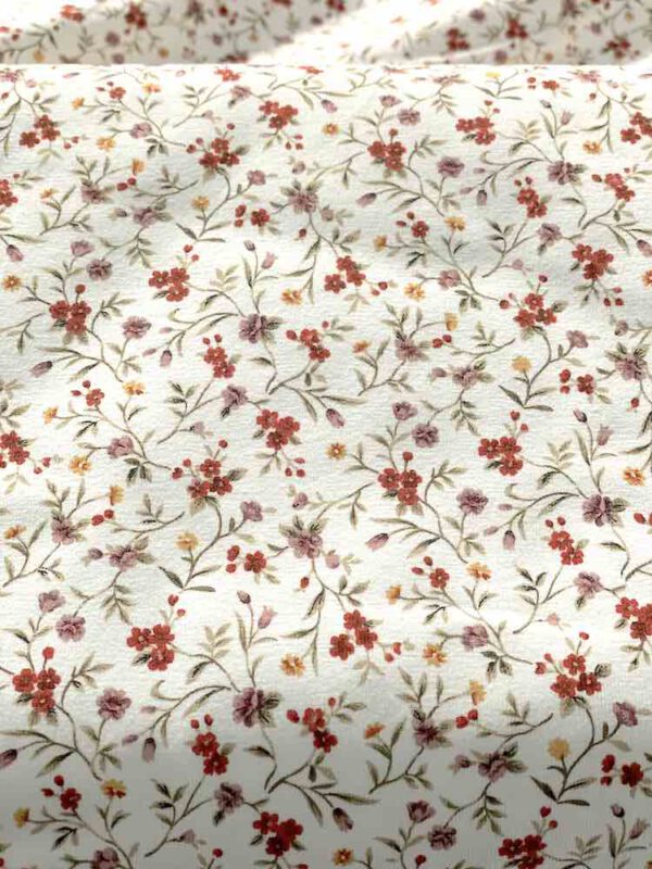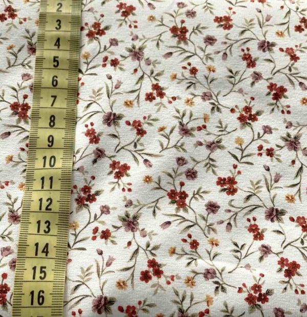 Baumwolljersey mit Digitaldruck Millefleur auf cremefarbenem Grund.