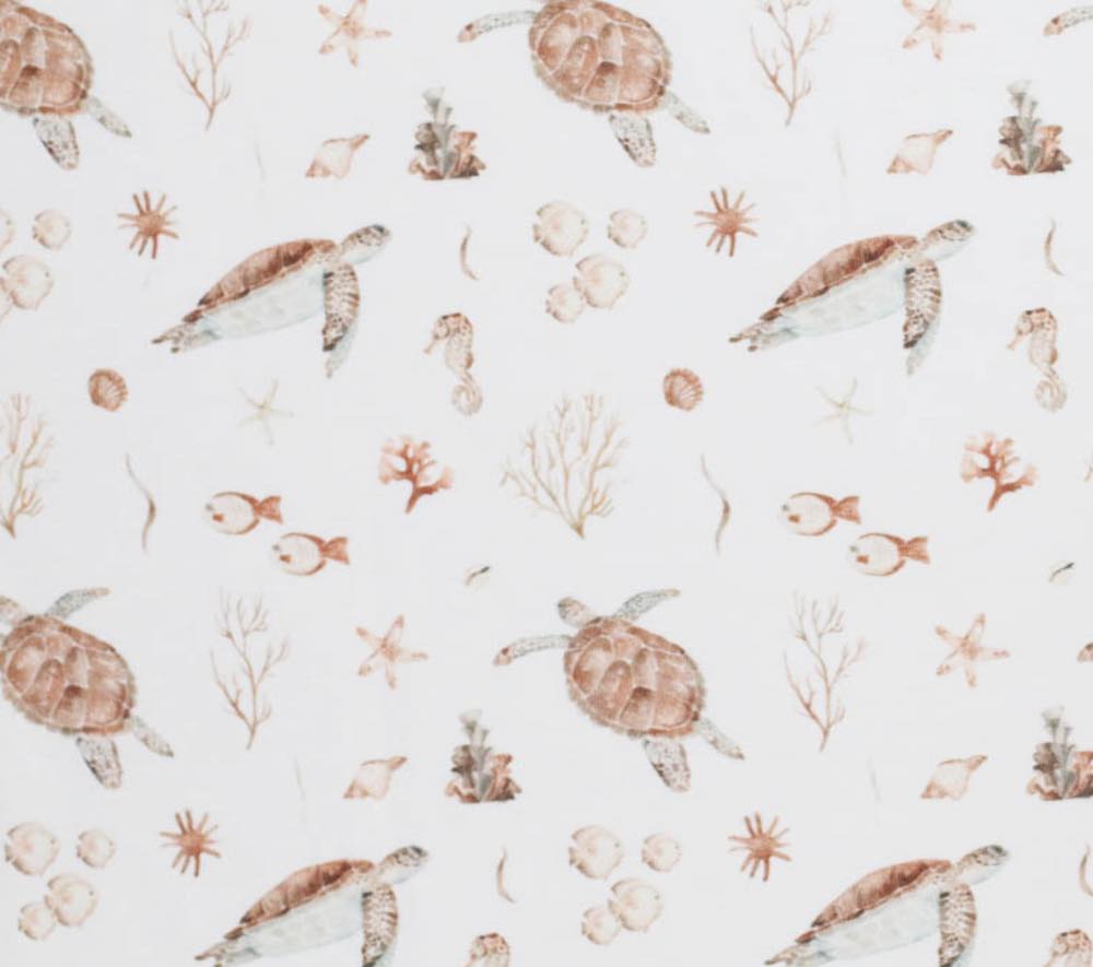 Baumwolljersey mit Digitaldruck Schildkröten Leben auf cremefarbenem Grund.