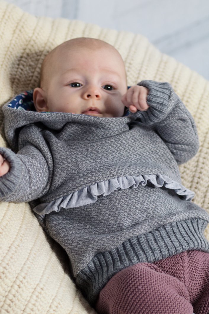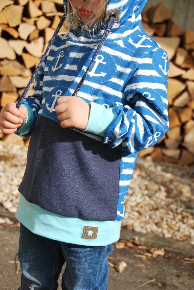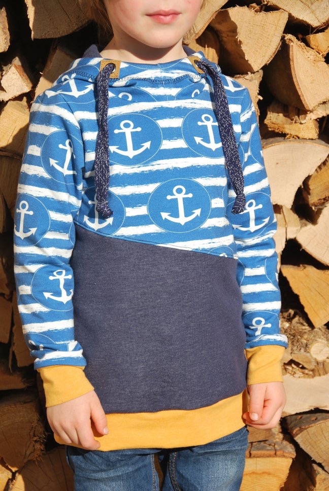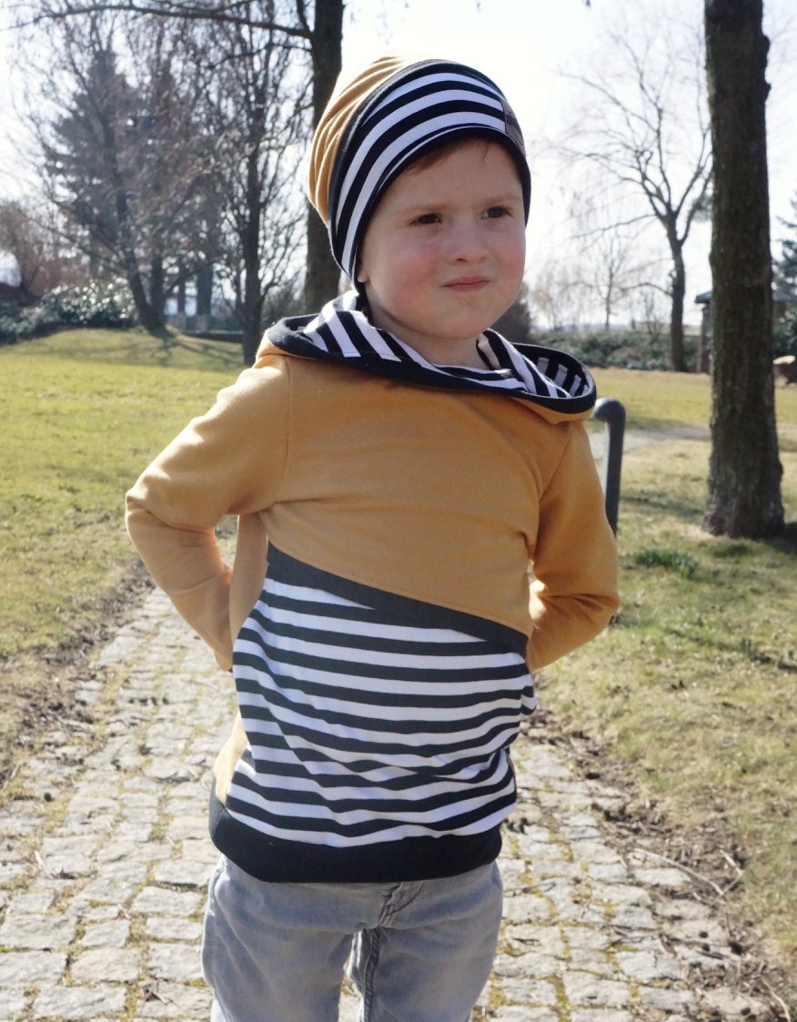 Dann ist das Schnittmuster YOLI genau der richtige Hoodie für dein Kind!