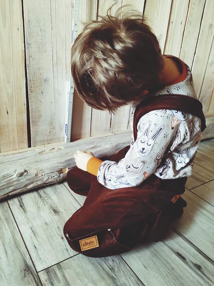 Du kannst die Salopette mit oder ohne Latz nähen, zwei verschiedenen Beinweiten stehen Dir zur Verfügung. Drei Längen mit oder ohne Bündchenabschluß stehen zur Wahl. Drei verschiedene Taschenarten ermöglichen Dir, viele Hingucker zu kreieren und geben dem Mini Platz für kleine Schätze. Coole Jungs tragen Cargotaschen auf ihrer Latzhose.