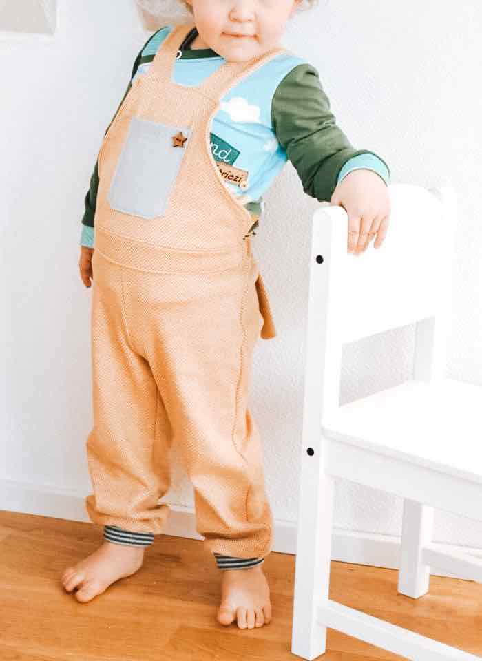 Du kannst die Salopette mit oder ohne Latz nähen, zwei verschiedenen Beinweiten stehen Dir zur Verfügung. Drei Längen mit oder ohne Bündchenabschluß stehen zur Wahl. Drei verschiedene Taschenarten ermöglichen Dir, viele Hingucker zu kreieren und geben dem Mini Platz für kleine Schätze. Coole Jungs tragen Cargotaschen auf ihrer Latzhose.