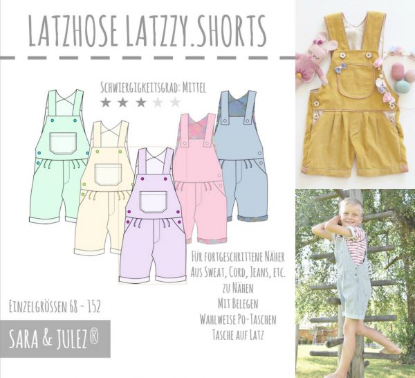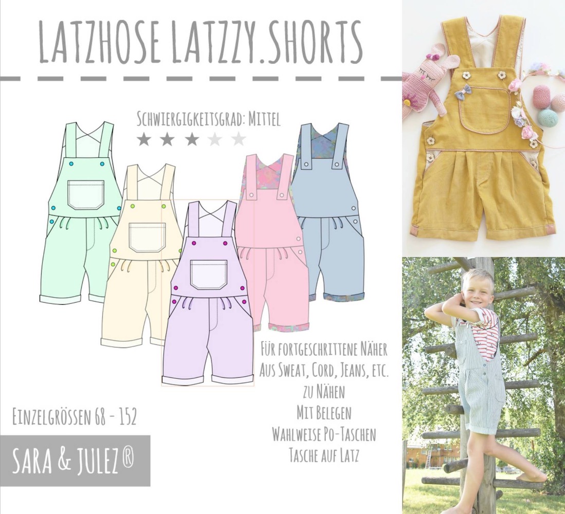 Die LATZZY.SHORTS wird aus Sweat, Cord, Jeans, Interlock, etc. genäht und ist für fortgeschrittene Näher/innen geeignet.