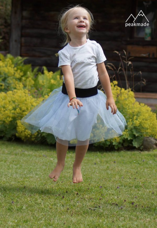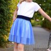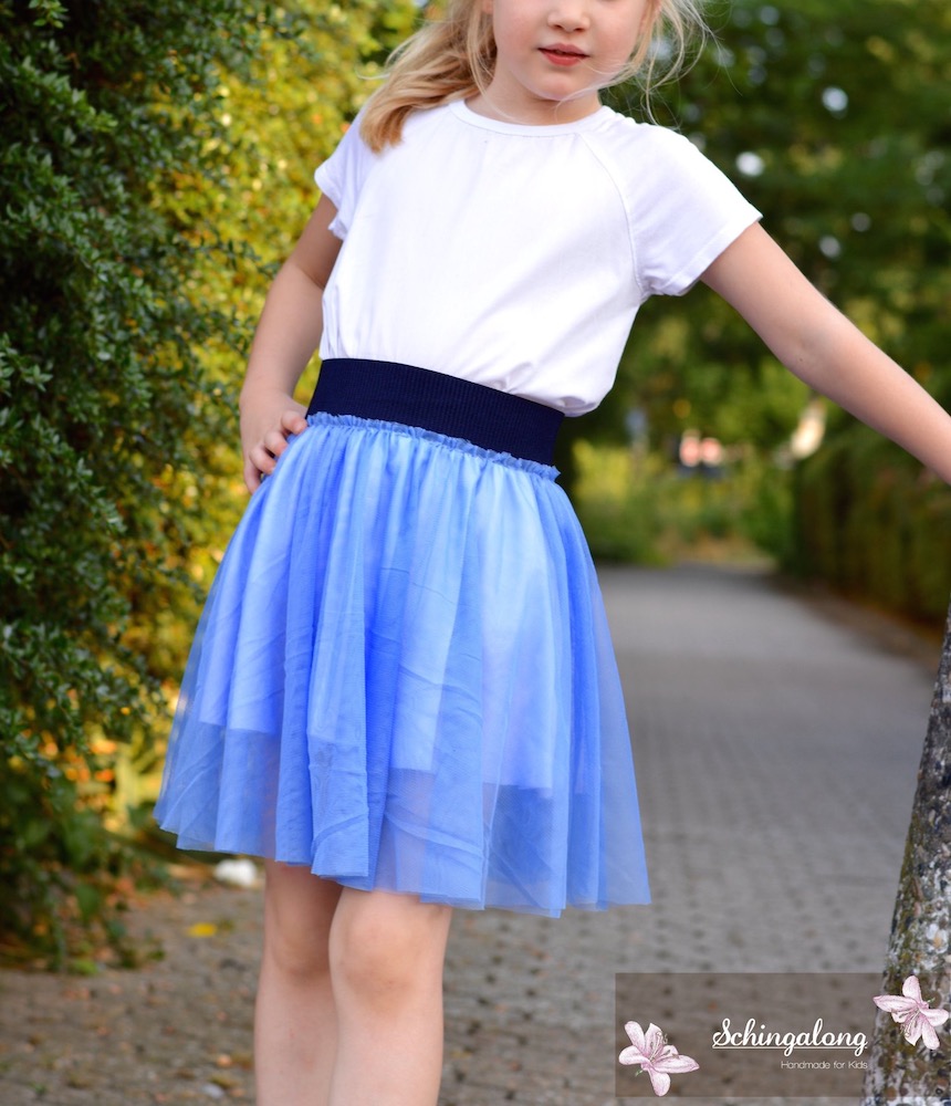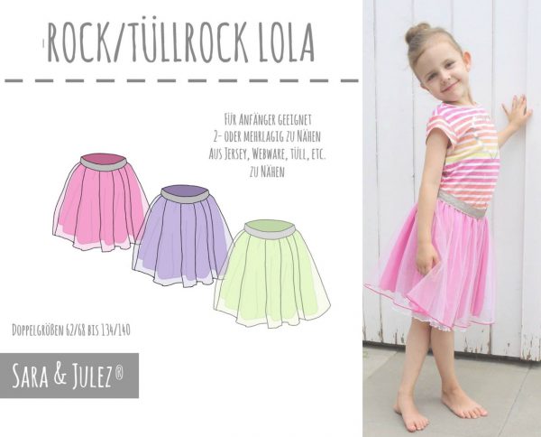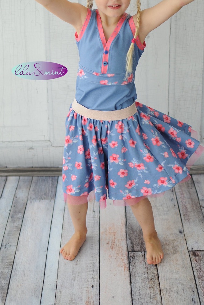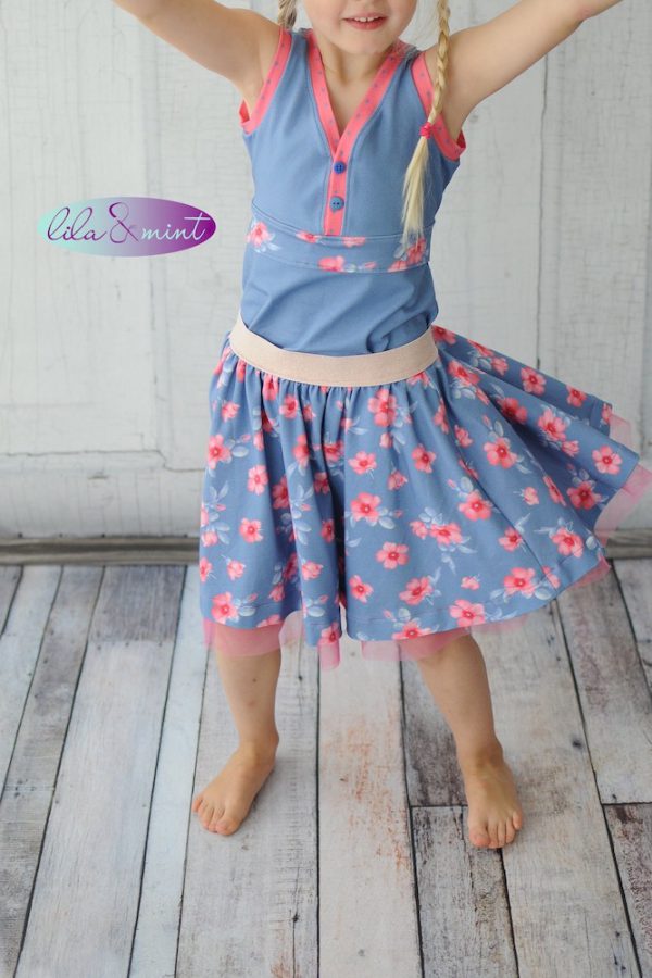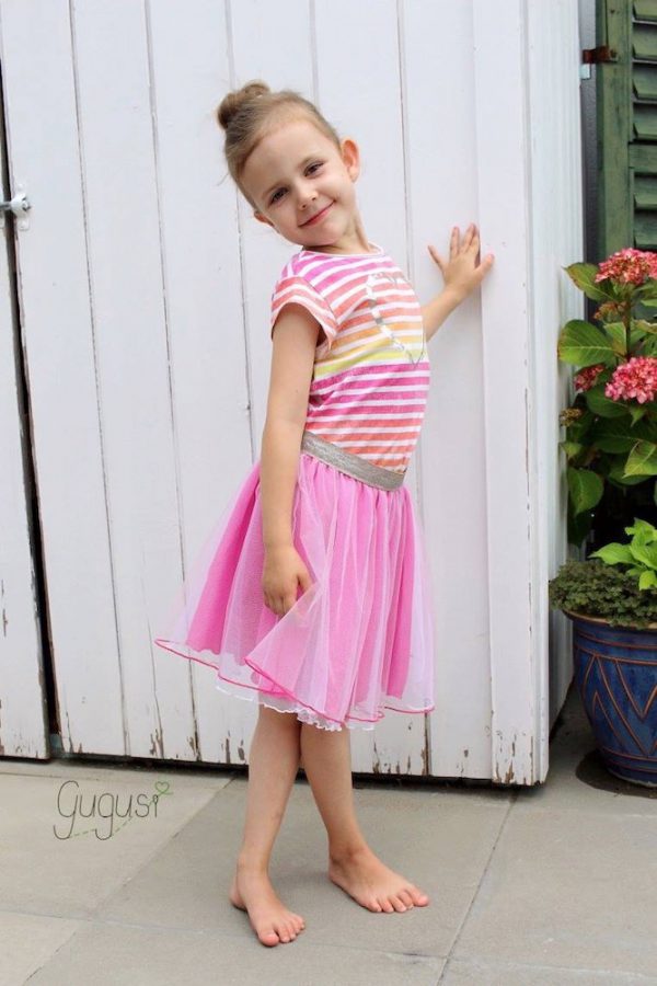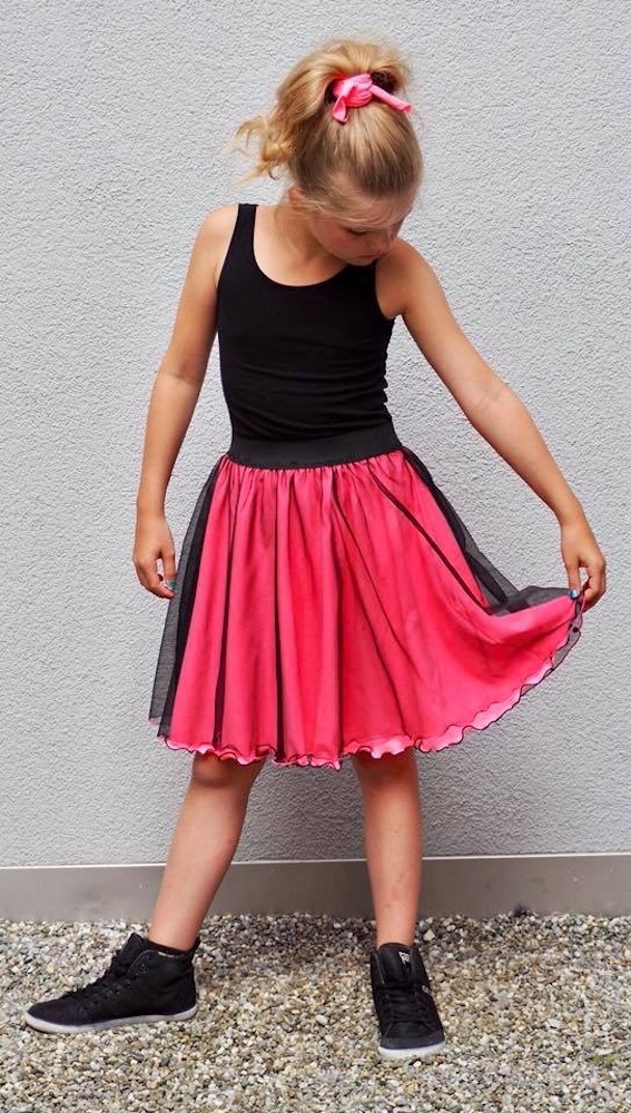 LOLA wird aus Jersey und Tüll genäht und ist auch für Nähanfängerinnen geeignet. Außerdem kannst du natürlich auch alle anderen Stoffe wie Chiffon, leichte Webware, Sommersweat, etc. nutzen.