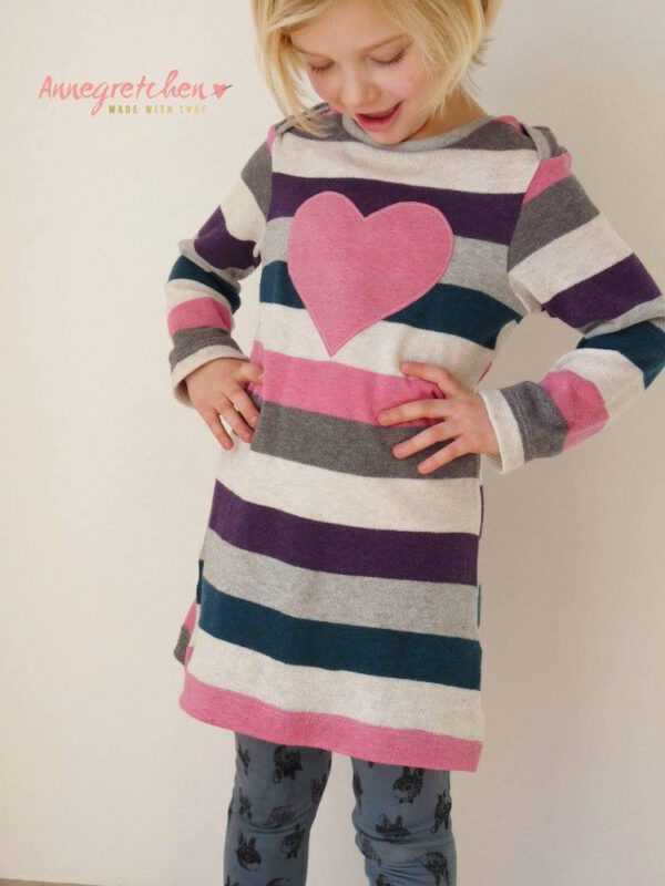 Beim E-Book Shirtkleid EVERLEE mit amerikanischem Ausschnitt handelt es sich um ein vielseitiges Ebook für ein Kinderkleidchen mit etlichen Variationsmöglichkeiten.
