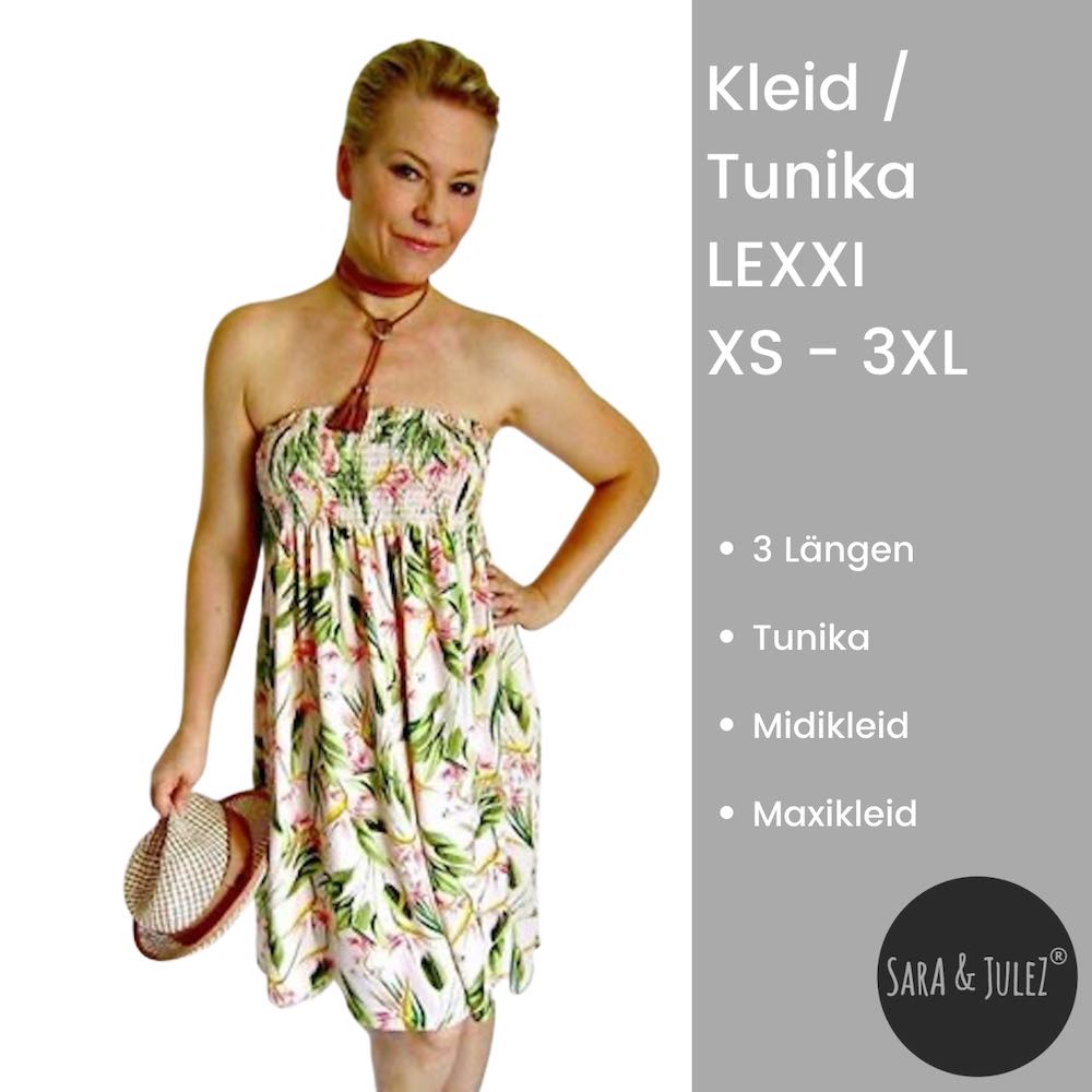 Genäht werden kann LEXXI bevorzugt aus Webware, Viskose-Jersey, leichtem Jersey, Voile und allen anderen leichten Sommerstoffen.